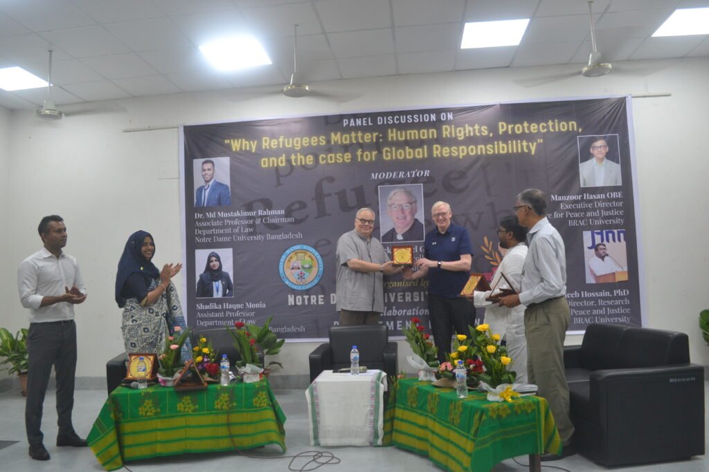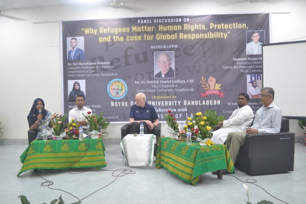The discussion, titled “Why Refugees Matter: Human Rights, Protection and the Case for Global Responsibility,” was organized in collaboration with the Department of Law. The event brought together students, faculty, and experts to shed light on the global refugee crisis, with a special focus on the experiences of refugees from Gaza and the Rohingya community residing in Bangladesh.